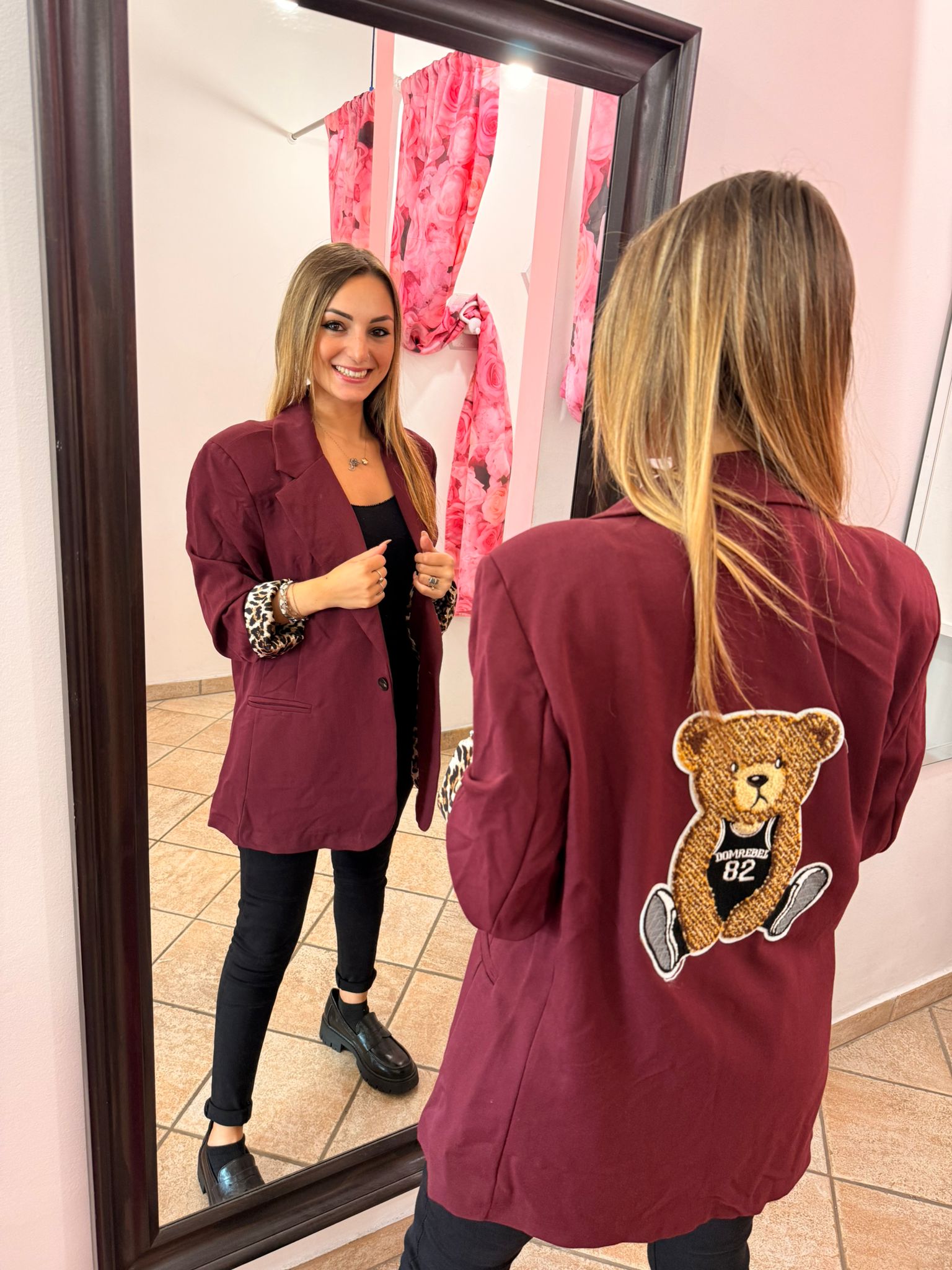 Blazer bordeaux , con Teddy ricamato sul dorso.