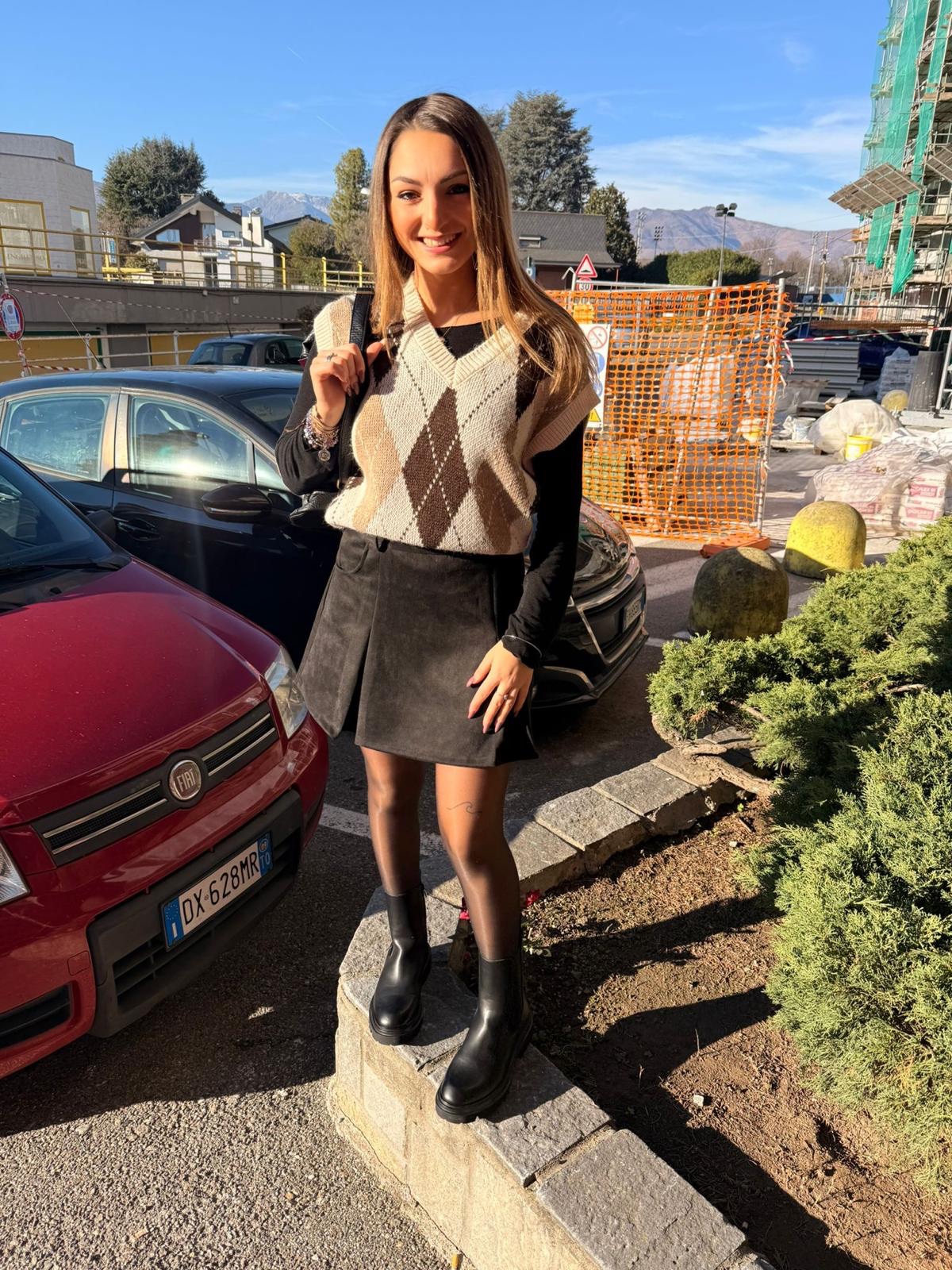 Gilet losanghe beige.