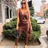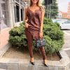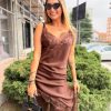 Top in raso color cioccolato, taglia unica veste fino alla 46.